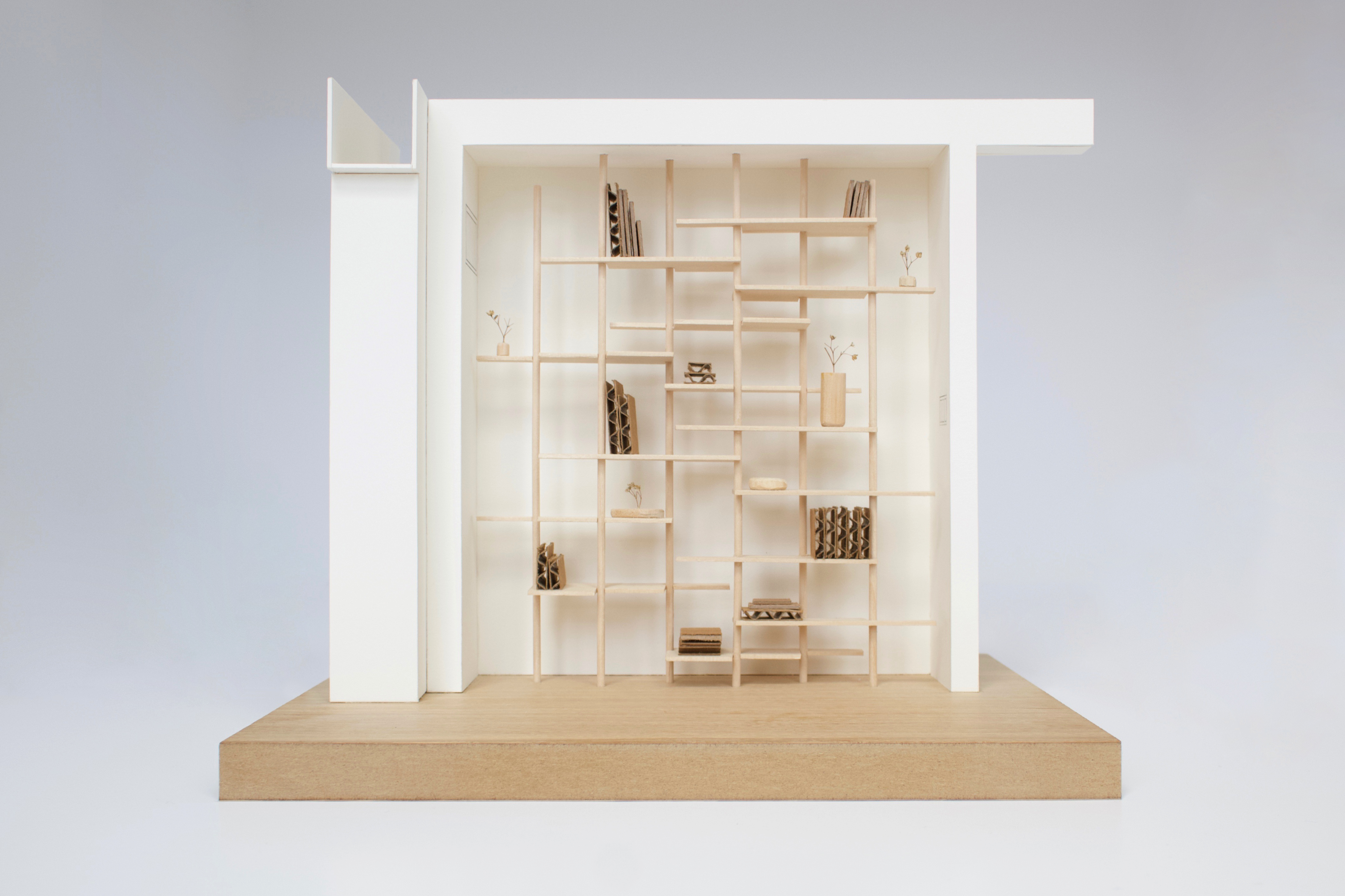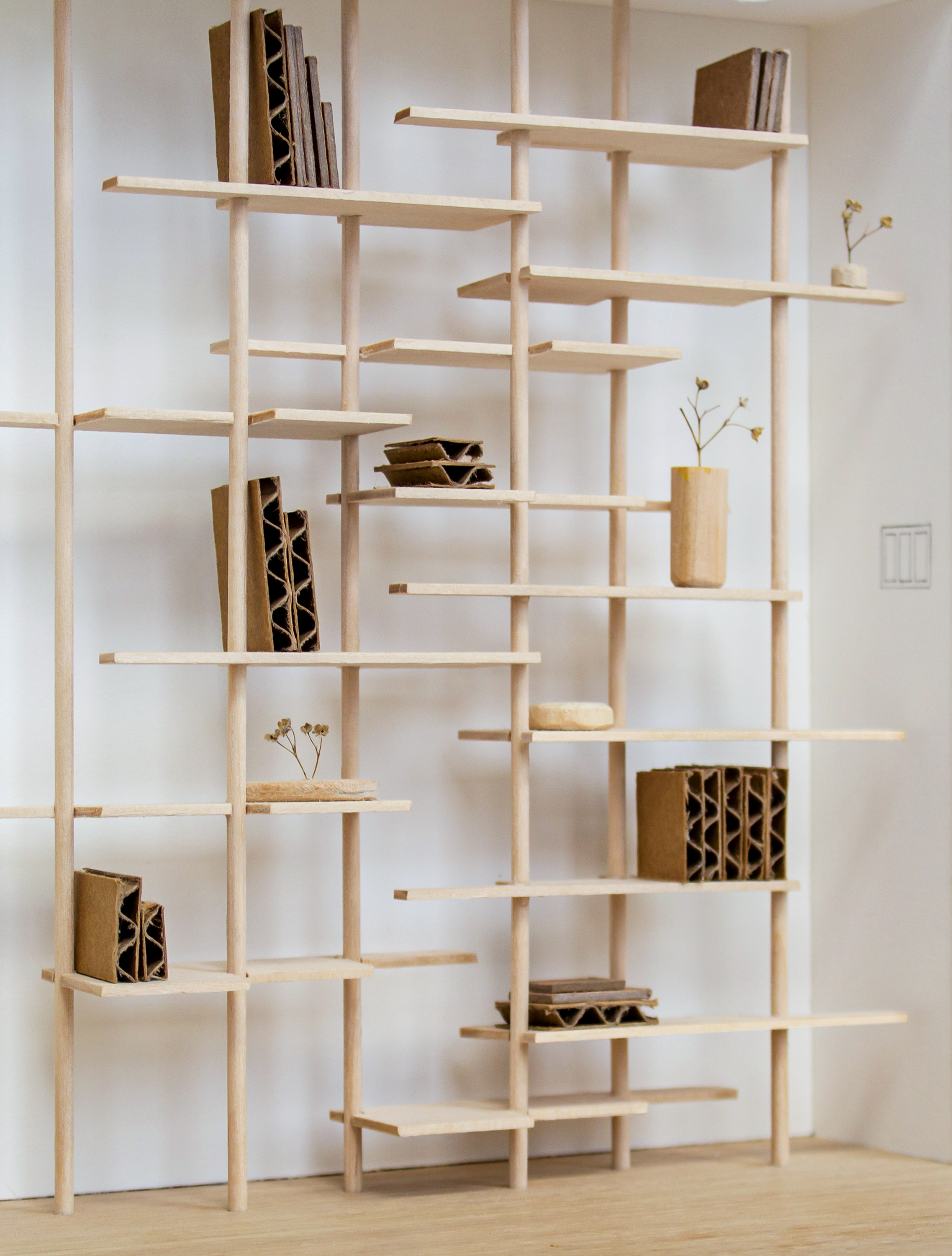 Model: Cardboard and dried flowers on basswood Shelf: White oak
