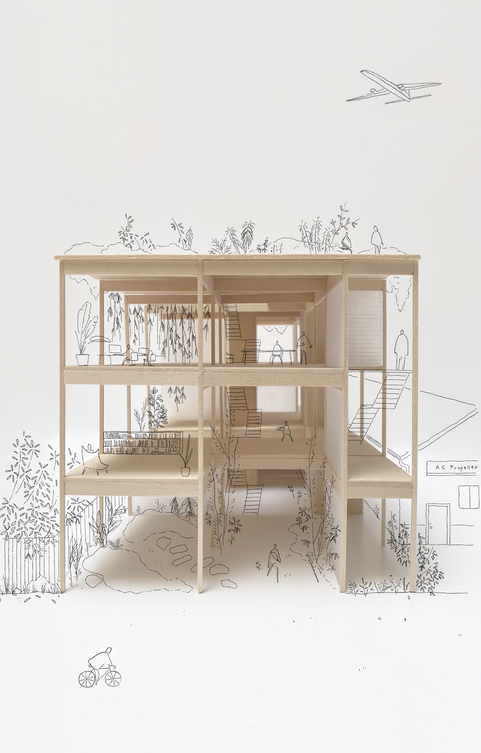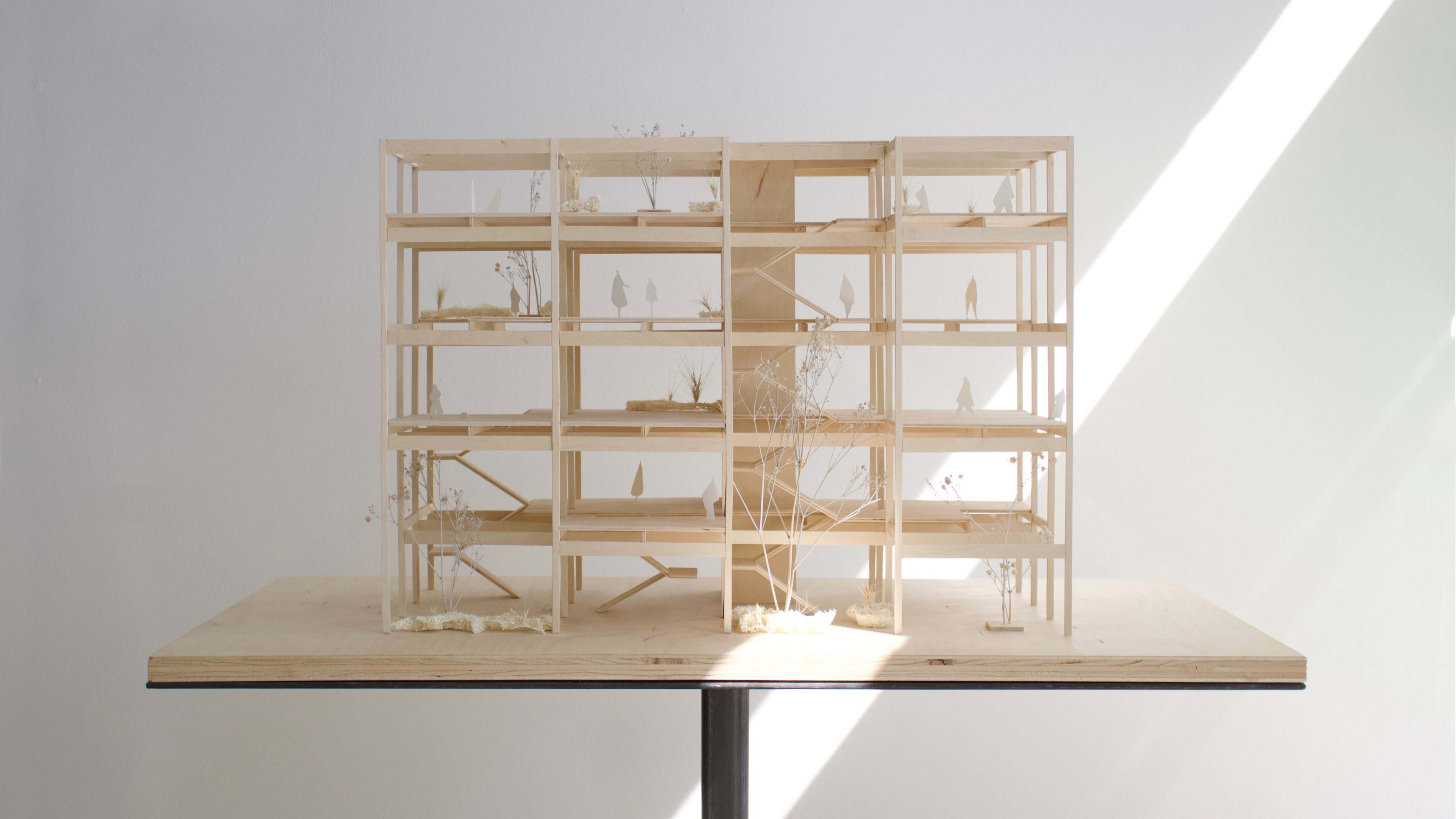 Four models were built to study the design for a new Wittman Estes mass timber office located in the Georgetown neighborhood of Seattle. The models investigate spatial configurations, distribution of garden spaces, program, and mass timber construction.